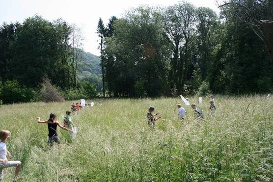 Mit selbstgebastelten Keschern und der Genehmigung für die Mitglieder des entomologischen Vereins Insekten zu Beobachtungszwecken kurzzeitig fangen zu dürfen gedeckt, konnten die Besucher unter Anleitung auf dem abgeschlossenen Gelände auf Schmetterlingsjagd gehen.